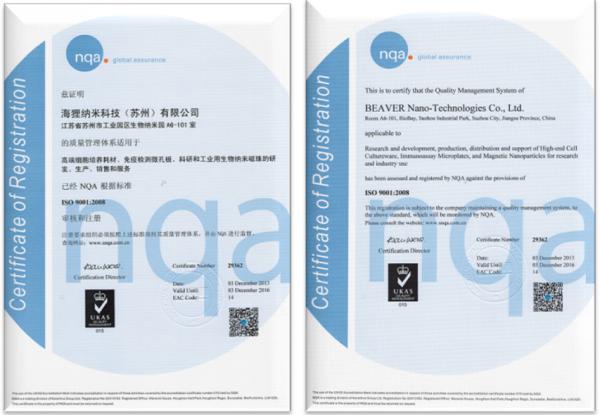 ISO9001質(zhì)量管理標準是迄今為止世界上使用最廣泛、最成熟的質(zhì)量管理方法;NQA是一家權(quán)威的跨國認證機構(gòu),使用英國國家質(zhì)量保證有限公司的認證資源,頒發(fā)經(jīng)UKAS認可的管理體系認證證書。海貍公司作為一家面向國際的生物納米高科技企業(yè),成立伊始就將質(zhì)量視為企業(yè)的生命,從產(chǎn)品設計開發(fā)、生產(chǎn)、檢驗、售前及售后支持等所有環(huán)節(jié)均嚴格按照ISO9001質(zhì)量管理標準進行全方位、規(guī)范化的管理和控制。海貍采用國際通行的質(zhì)量管理模式對公司實施管理,并通過了國際權(quán)威機構(gòu)NQA的審核認證,是對海貍質(zhì)量管理體系的最好的肯定;這將對進一步提高公司的質(zhì)量管理水平,推動更好更快的發(fā)展奠定堅實的基礎。海貍將繼續(xù)以顧客為關注焦點,持續(xù)改進和提升公司的質(zhì)量管理水平,以最好的產(chǎn)品和服務迎接市場的檢驗和挑戰(zhàn)。