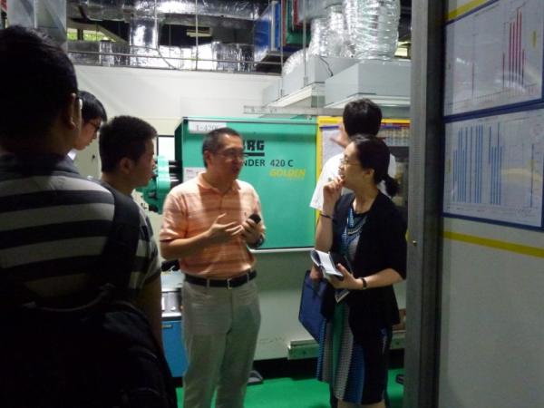 圖3. 任輝博士帶領來賓參觀生產區(qū)并介紹公司產品