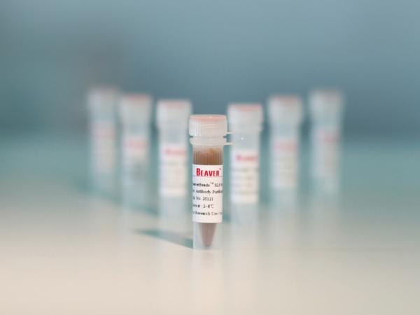 BeaverBeads™ Mag NHS和BeaverBeads™ Magrose NHS都是表面為NHS基團修飾的磁珠,能夠與帶有伯胺基團的蛋白和其他分子形成穩(wěn)定的肽鍵,用于親和純化或者分析檢測抗體、抗原和其他生物分子。與傳統(tǒng)的羧基、氨基磁珠相比,表面含NHS基團的磁珠無需事先采EDC/NHS或戊二醛進行活化,只需簡單地將含伯氨基的生物配體溶解于偶聯(lián)緩沖液中,室溫下將蛋白溶液與Mag NHS磁珠混合1~2h便可將生物配體共價偶聯(lián)到磁珠上,具有操作簡單、偶聯(lián)條件溫和、生物配體偶聯(lián)快速高效的優(yōu)點。