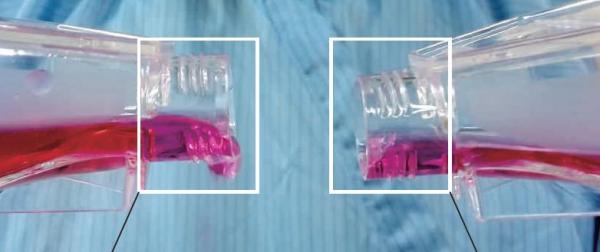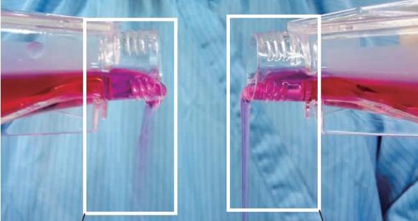 普通瓶口:培養(yǎng)液倒出終止,外瓶口掛壁 Smart瓶口:培養(yǎng)液倒出終止,液滴自動縮回瓶內(nèi),