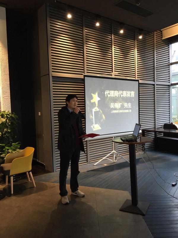 頒獎典禮上榮獲“鉆石營銷獎”的上海博侯生物的吳偉擴總經(jīng)理作為經(jīng)銷商代表發(fā)言, 吳總對海貍給予高度的肯定,并表示2017年一定會在16年的基礎(chǔ)上再接再厲,繼續(xù)做好廠商和終端用戶之間的橋梁。