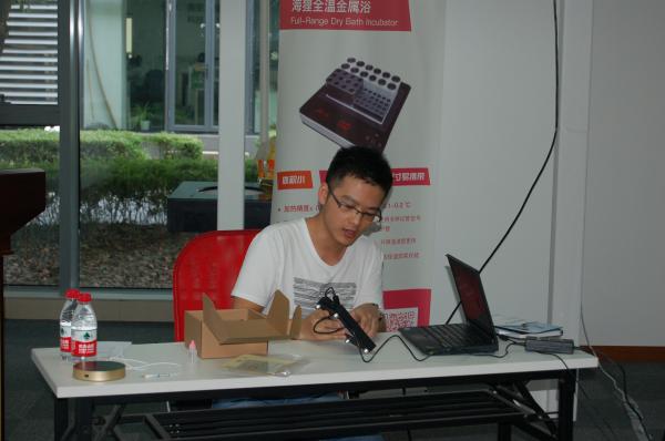 海貍高級產(chǎn)品經(jīng)理董友玉為大家介紹了海貍?cè)珳亟饘僭〉漠a(chǎn)品性能、應(yīng)用領(lǐng)域以及市場優(yōu)勢等等。海貍開發(fā)的這款金屬浴具有體積小、重量輕、溫控性能好等特點,可以解決實驗室儀器擁擠,便于在超凈工作臺和潔凈實驗室使用。經(jīng)過董經(jīng)理深入淺出的介紹,大家對產(chǎn)品有了深入了解,對今后的營銷有了新思路。大家給予了董經(jīng)理雷鳴般的掌聲。