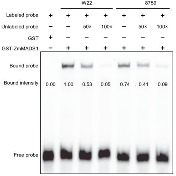 該研究采用BeaverBeadsTMGSH(70601)純化GST標(biāo)記的ZmMADS1進(jìn)行后續(xù)分析,發(fā)現(xiàn)SNP-1245作為順式作用元件通過影響上游基因ZmMADS1與ZCN8的結(jié)合來調(diào)控ZCN8的表達(dá)。在玉米向高山地區(qū)散播過程中,來自近緣祖先種(Zea mays ssp. mexicana)的另一個(gè)早開花自然變異雜交滲入進(jìn)SNP-1245早開花單倍型中,從而幫助玉米適應(yīng)溫帶環(huán)境。該研究不僅首次提出了玉米花期適應(yīng)過程中單個(gè)基因的逐步進(jìn)化機(jī)制,也揭示了近緣種的基因滲入對(duì)提高玉米適應(yīng)性的重要作用。